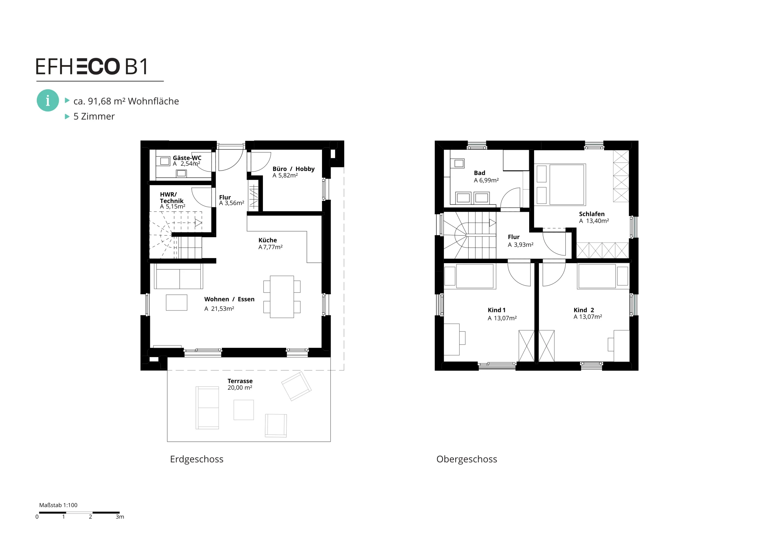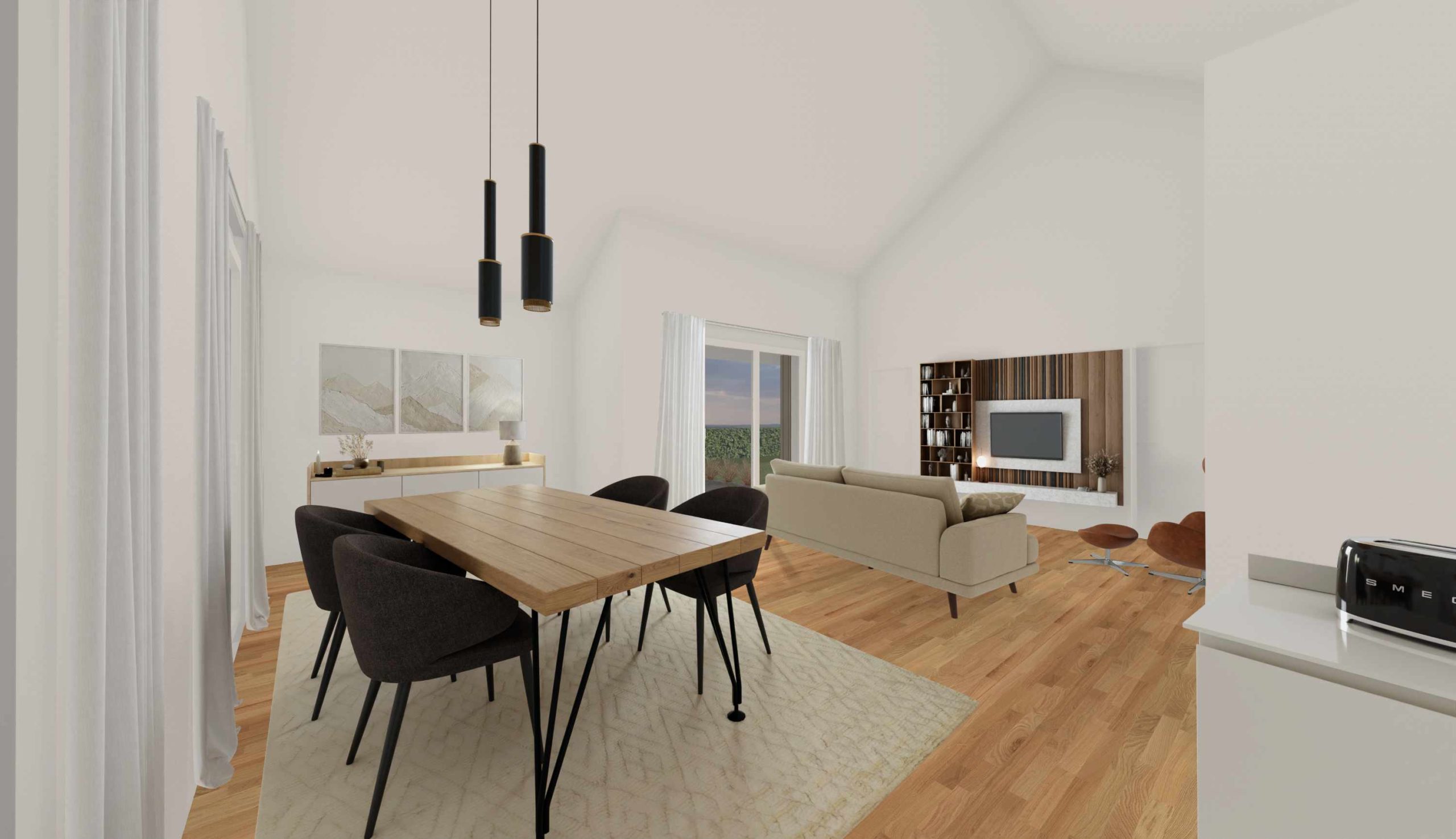 Innen überzeugt das Haus mit einer durchdachten Raumaufteilung, die flexibel auf die Bedürfnisse der Bewohner eingeht. Trotz der kompakten Abmessungen im Erdgeschoss bietet es ein zusätzliches Zimmer, das vielseitig als Homeoffice, Gästezimmer oder Hobbyraum genutzt werden kann. Eine stilvolle Nische im Eingangsbereich schafft Platz für Ihre Garderobe und die Ihrer Gäste, während unter der Treppe neben der Technik auch Abstellflächen für Ihre persönlichen Dinge geschaffen wurden.